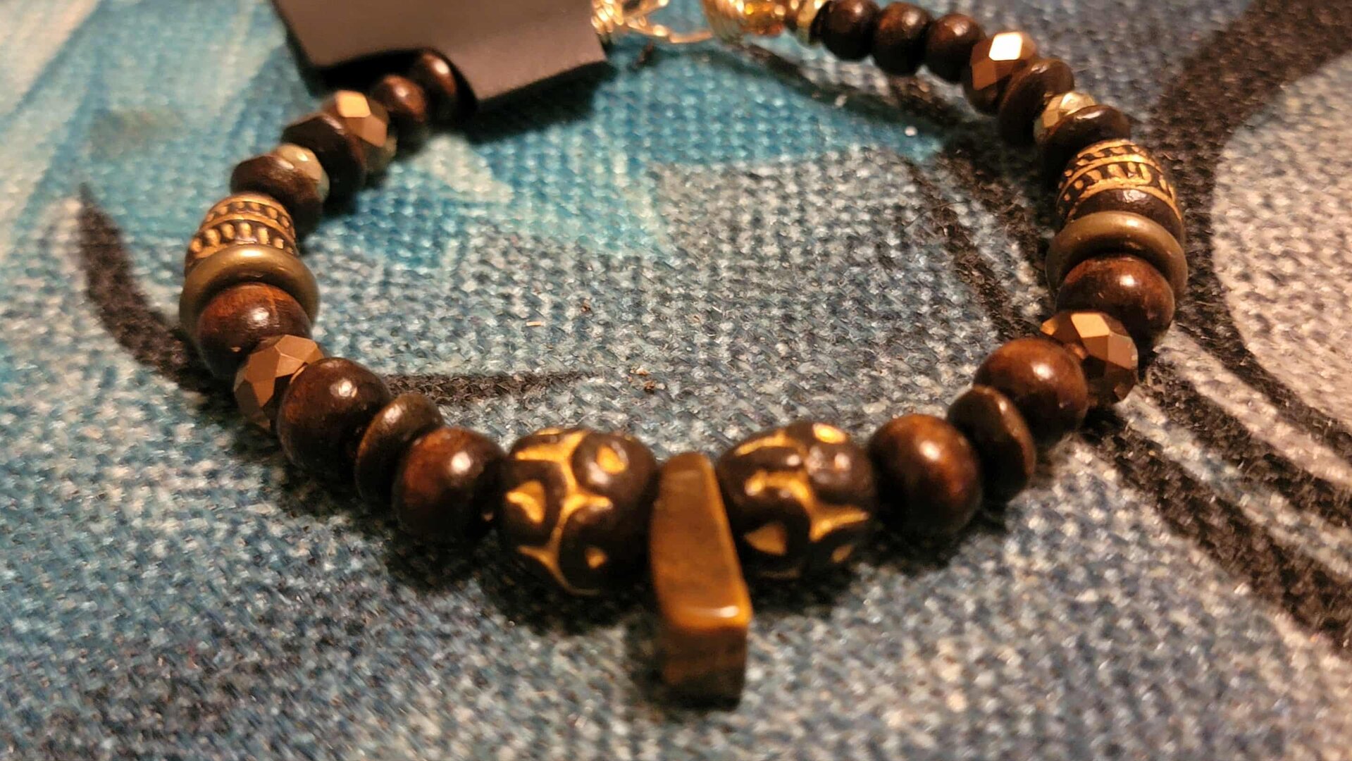 Mens CopperBrown & Gold Beaded Braclet with a touch of Gold with Bling OCJ