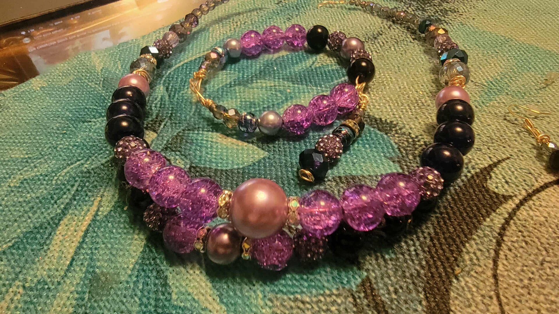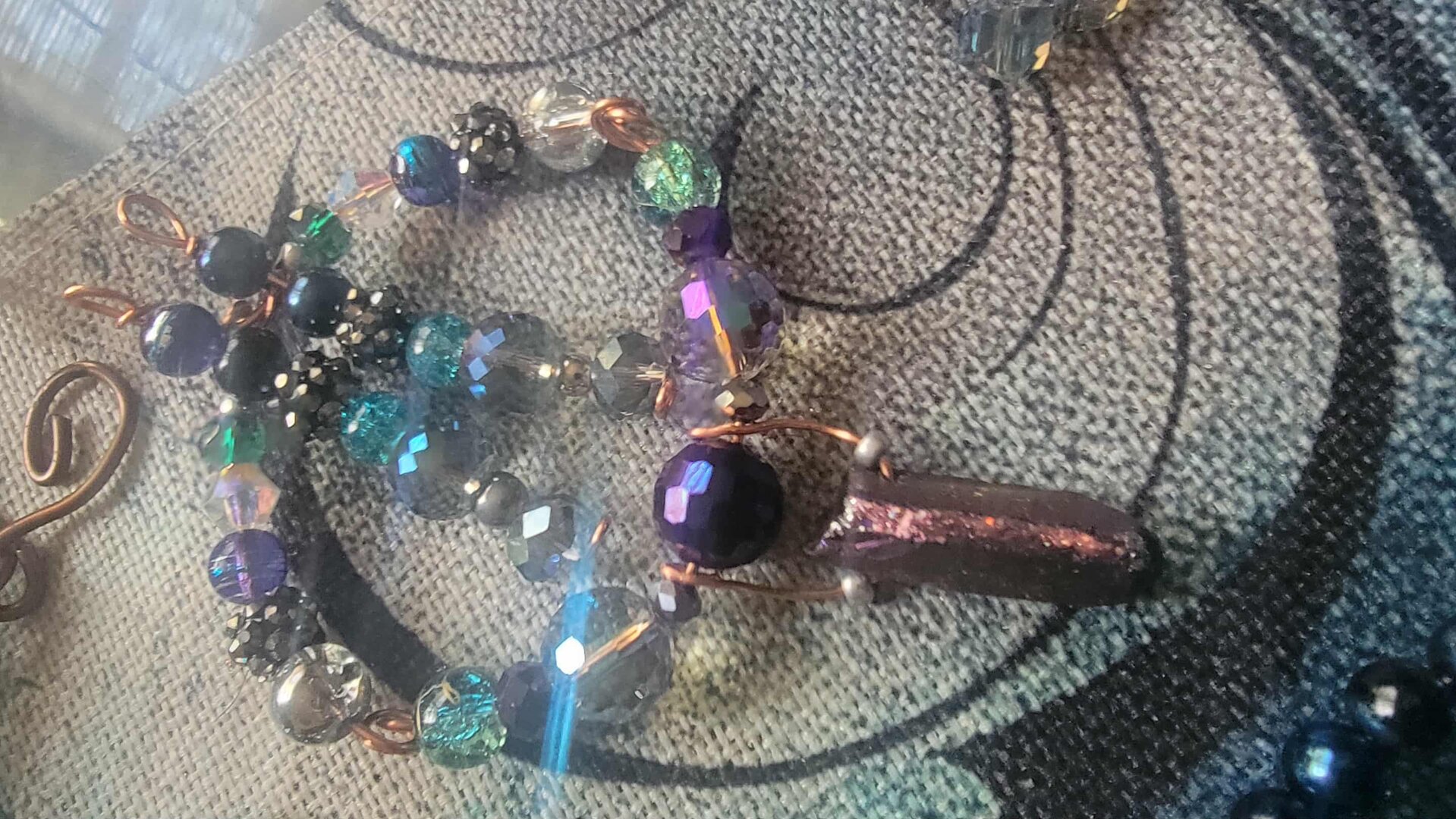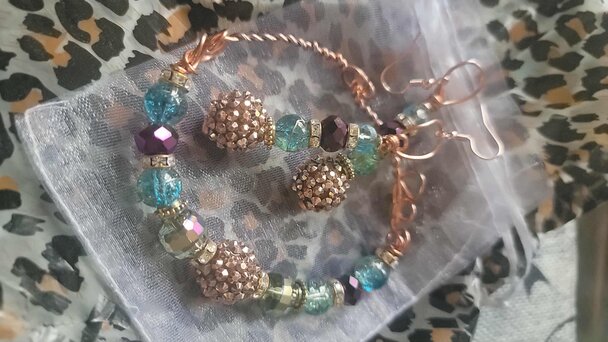 Ladies Copper Wire Design Elevate your shopping experience with our stunning Purple & Lavender and tealEarring and Bracelet Set with a touch of Crystal Set! This delightful combination adds a pop of color and charm to your cart, making every purchase a joy.