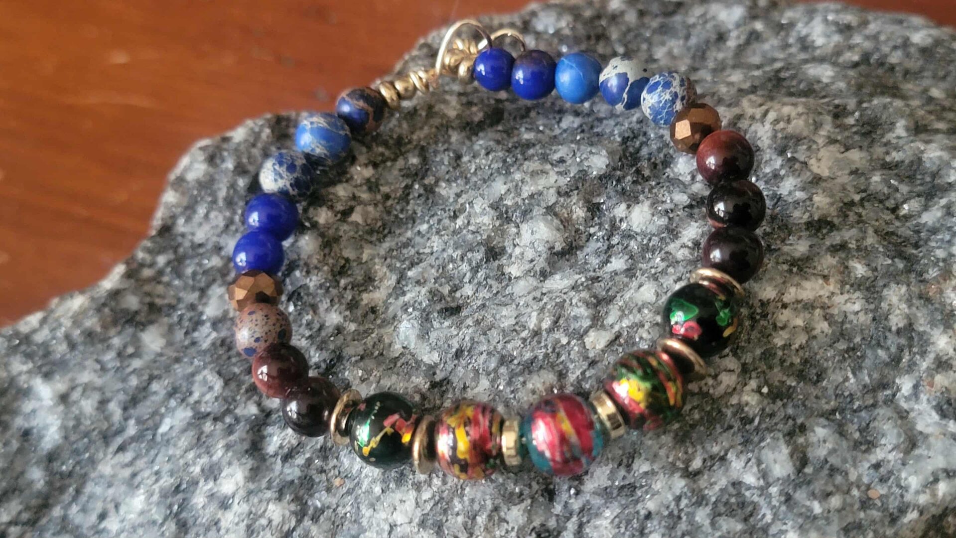 Womens Red Copper with Blue, and Black Beads with a touch of Light Red OCJ