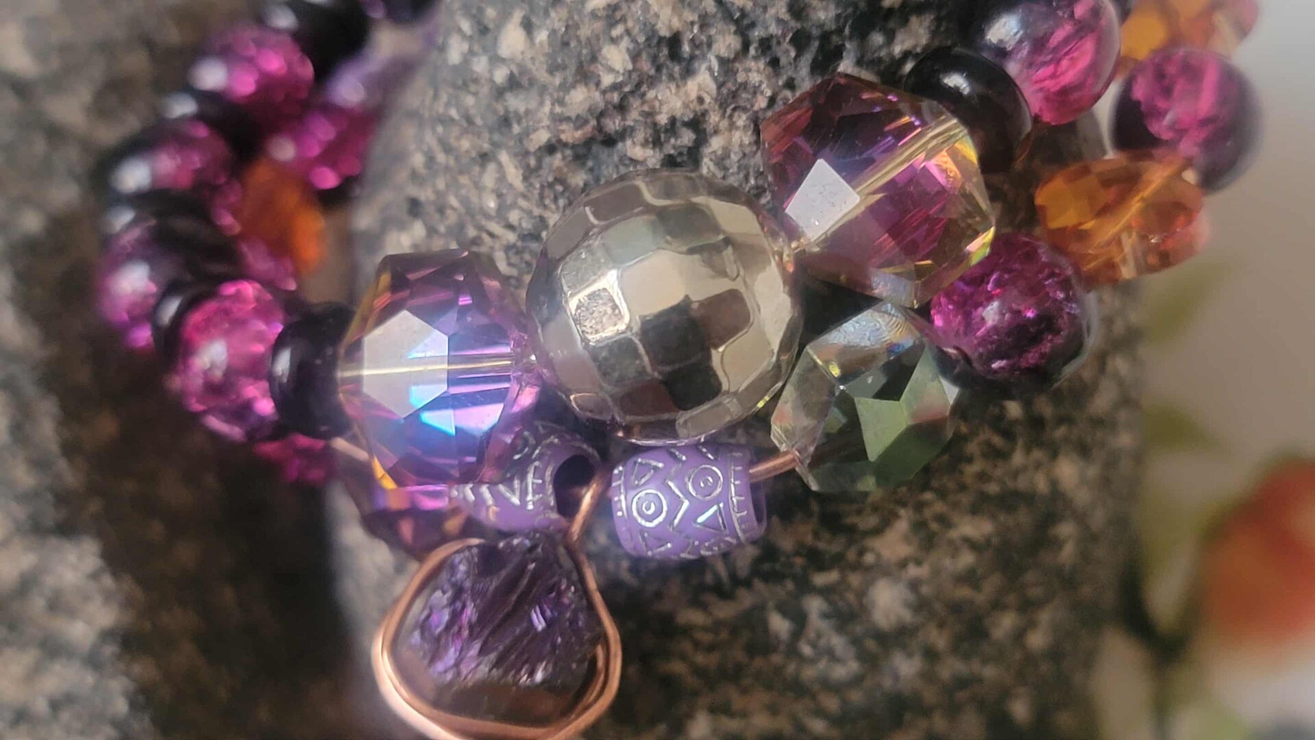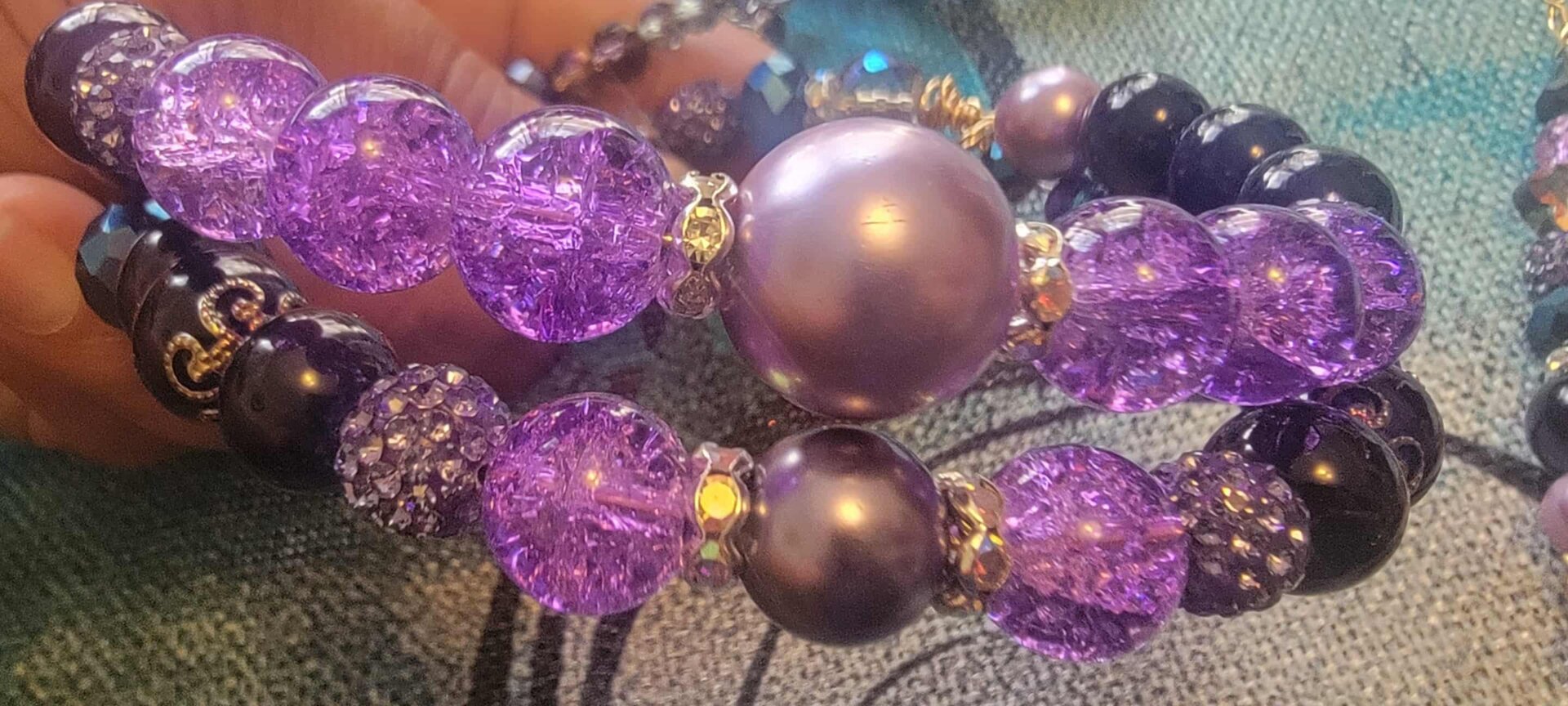 Womens Double Purple Copper with Blue, and Black Beads with a touch of Light Purple OCJ
