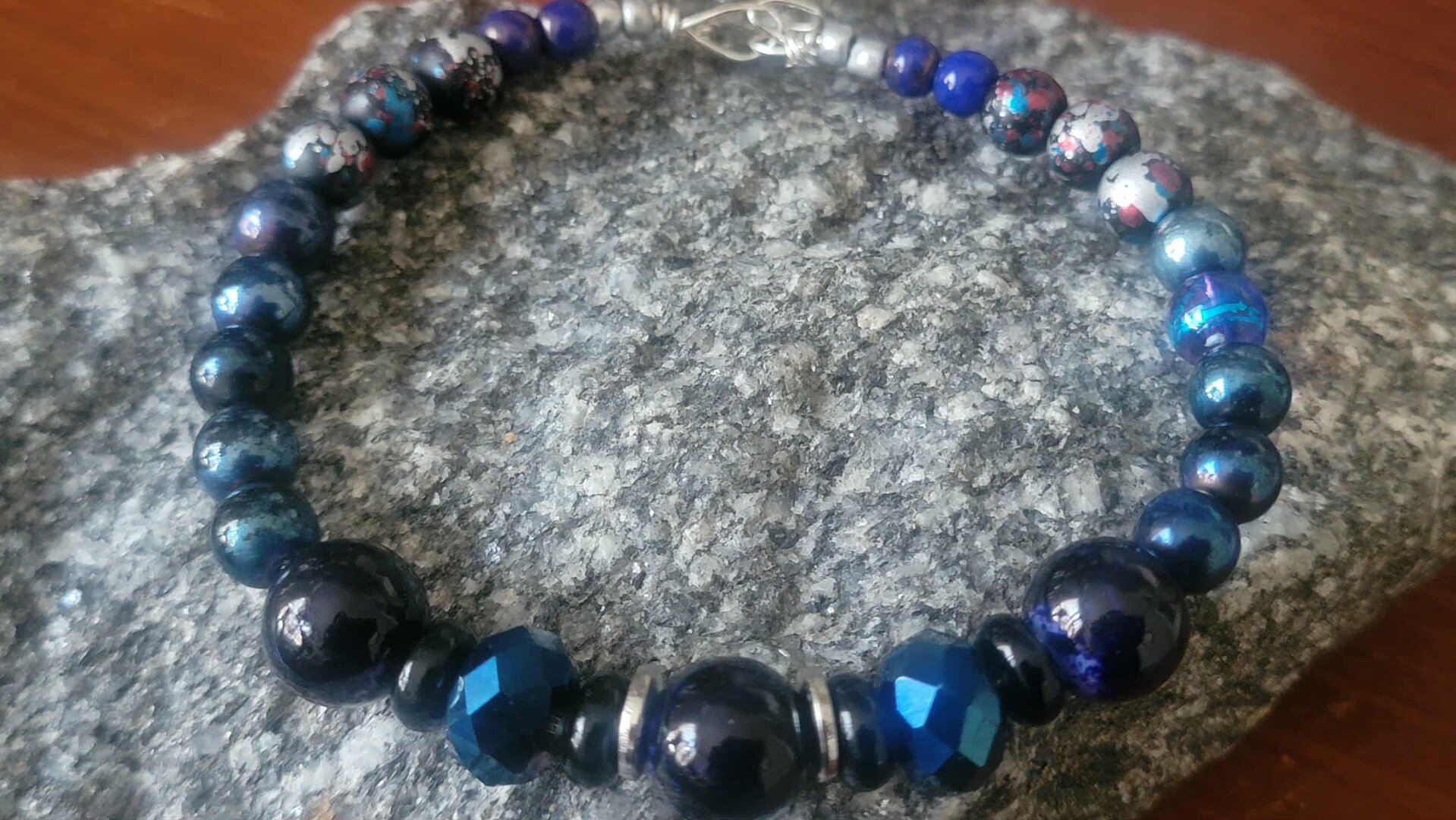 Womens Blue Copper with Blue, and Black Beads with a touch of Grey Bangel OCJ