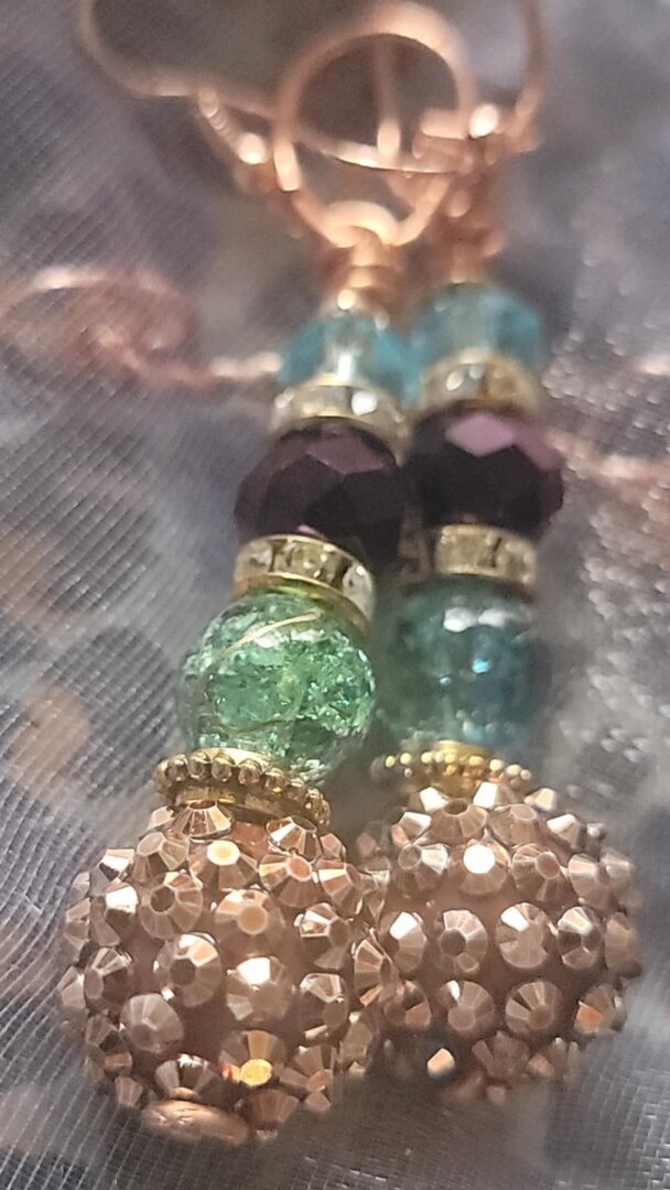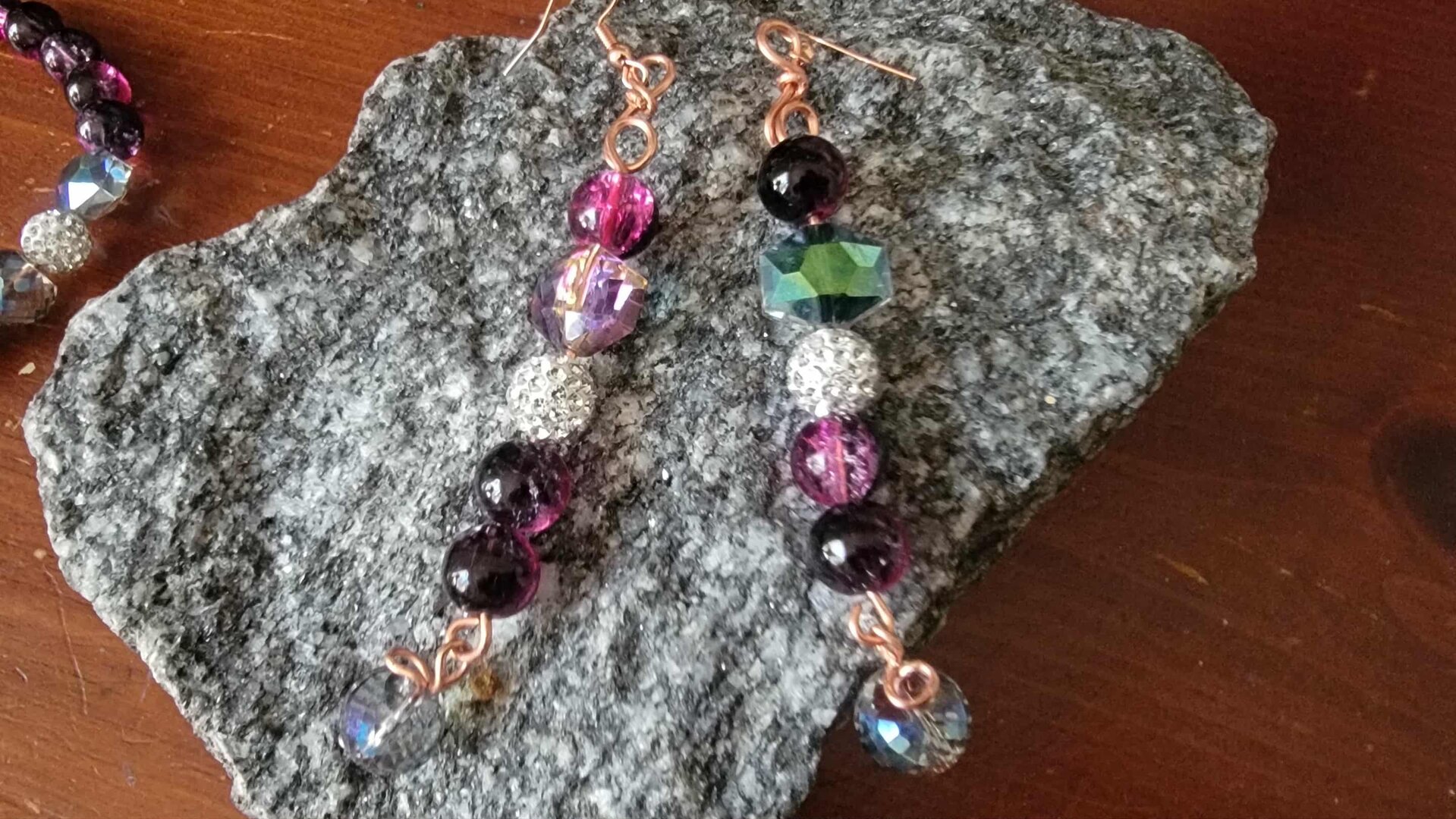 Ladies Copper Wire Design Elevate your shopping experience with our stunning Purple & Lavender and tealEarring and Bracelet Set with a touch of Crystal Set! This delightful combination adds a pop of color and charm to your cart, making every purchase a joy.