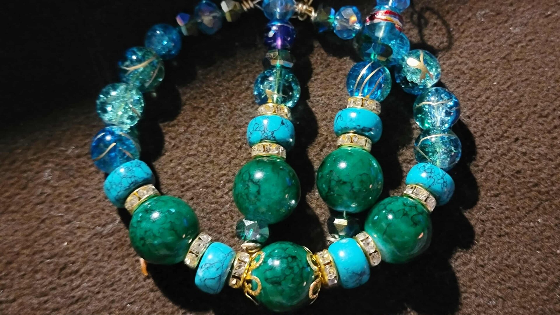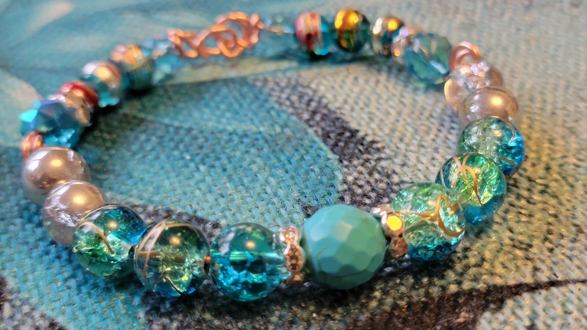Womens Turquois Copper with Blue, and Teal Beads with a touch of OCJ