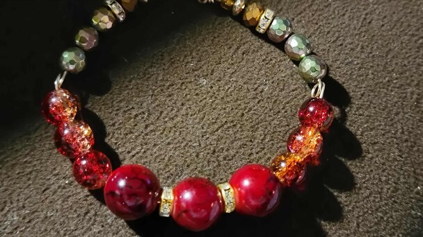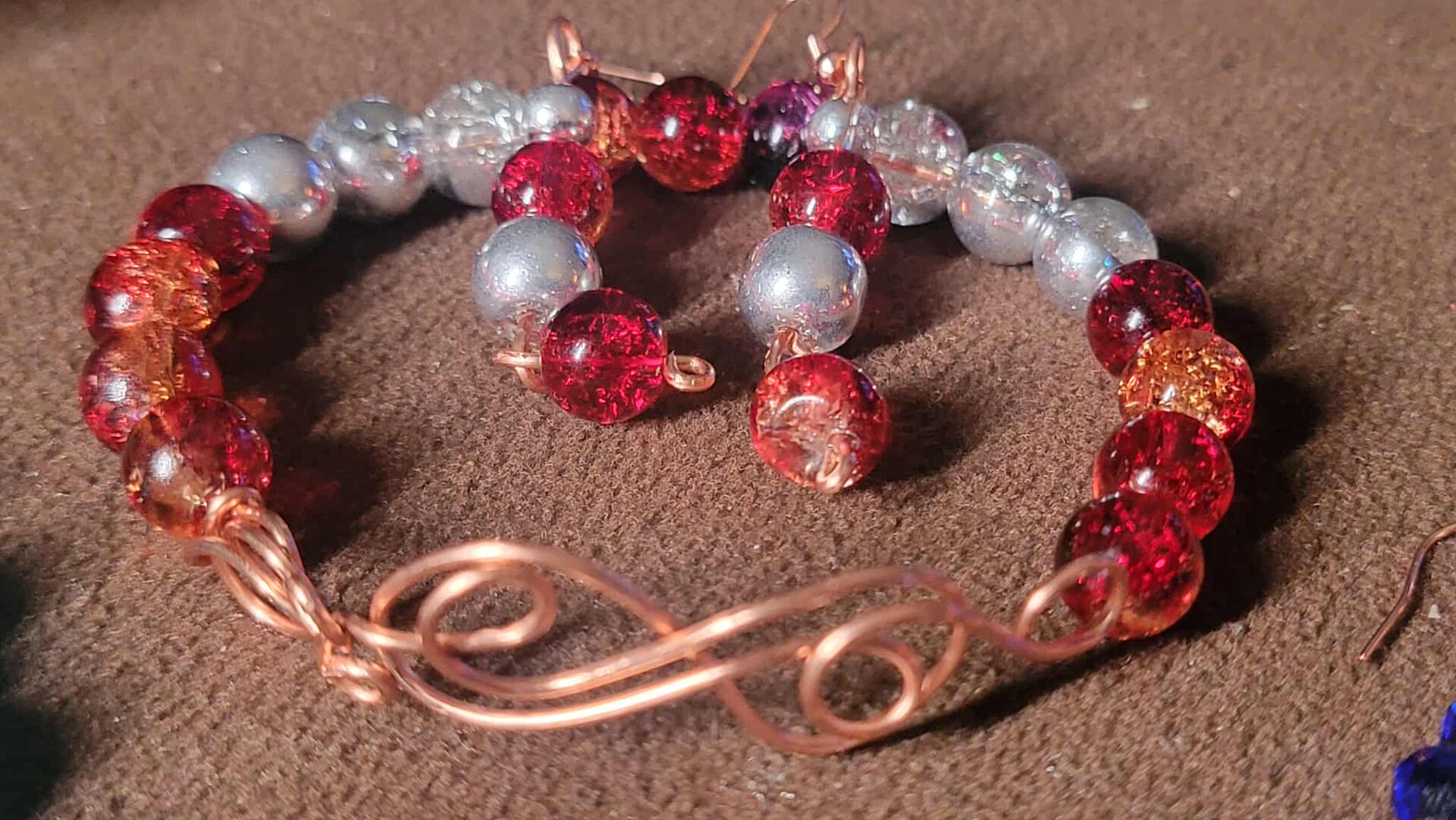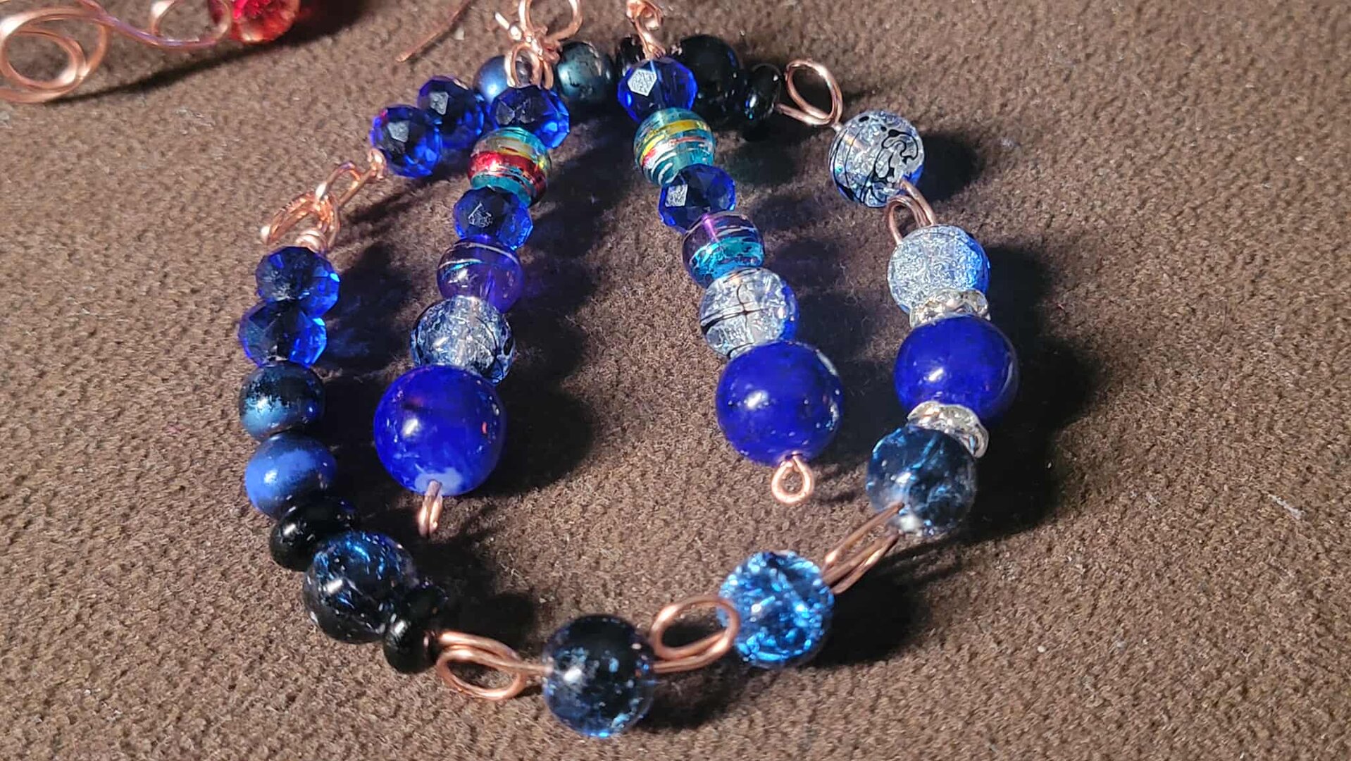 Womens Red Copper with Blue, and Black Beads with a touch of Light Red OCJ