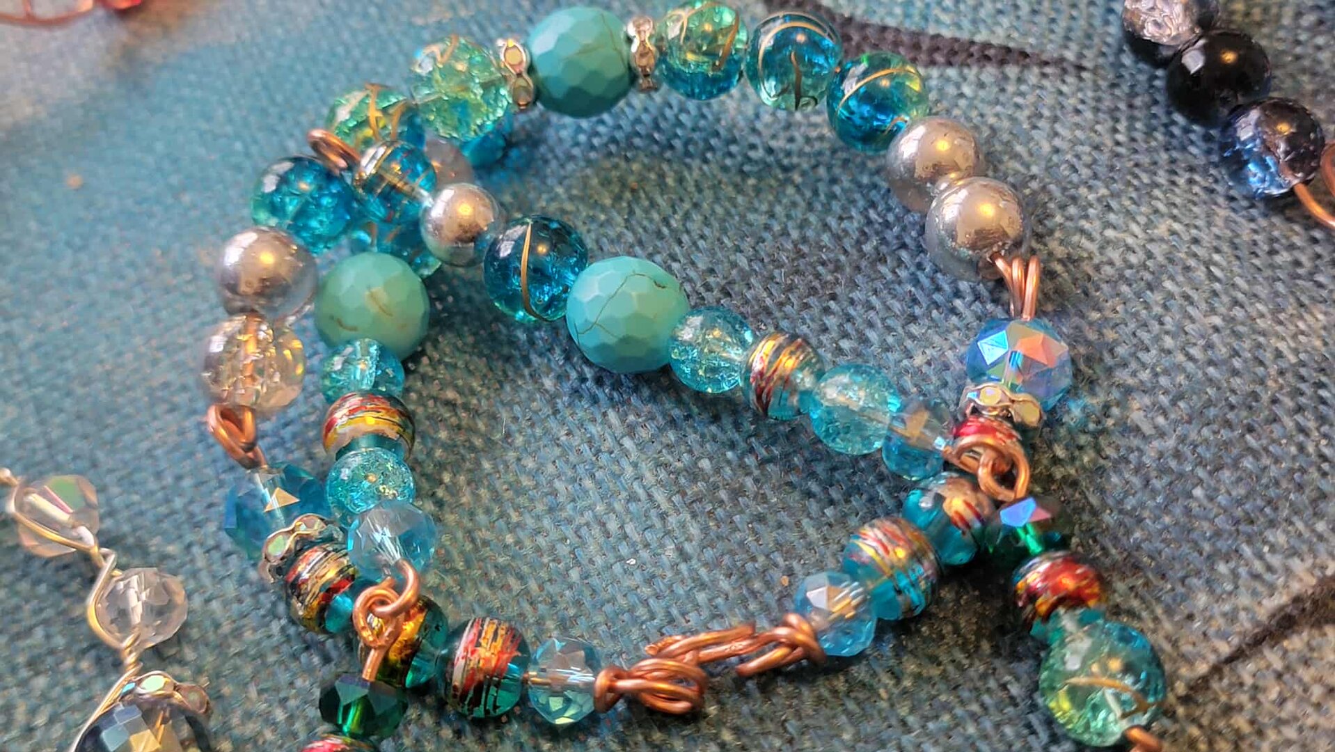Womens Turquois and Blue Copper with Blue, and Teal Beads with a touch of OCJ